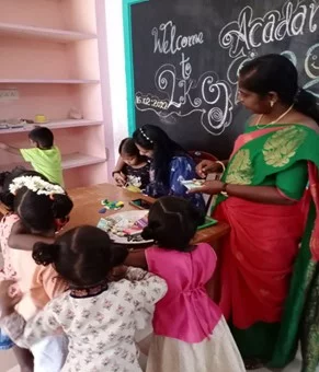 Im 2003 eingerichtete Kindergarten werden die Kinder spielerisch an den Schulunterricht herangeführt. Das Schuljahr beginnt in Indien im Juni mit einer Feier, zu der auch Eltern und Geschwisterkinder eingeladen sind.